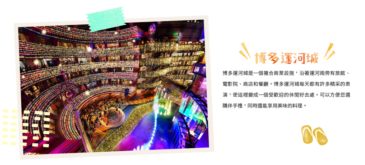 讓我們帶著期待的心情,在小港機場集合,搭機直飛北九州的門戶-福岡。福岡是北九州最有活力的城市,以「亞洲的大門」自我定位。魅力無限的福岡,是日本年輕人比例最高的城市,許多國際巨星演唱會或運動賽事都在福岡舉辦;熱情歡迎您抵達~盡情享受九州多元的美食文化與流行的購物體驗