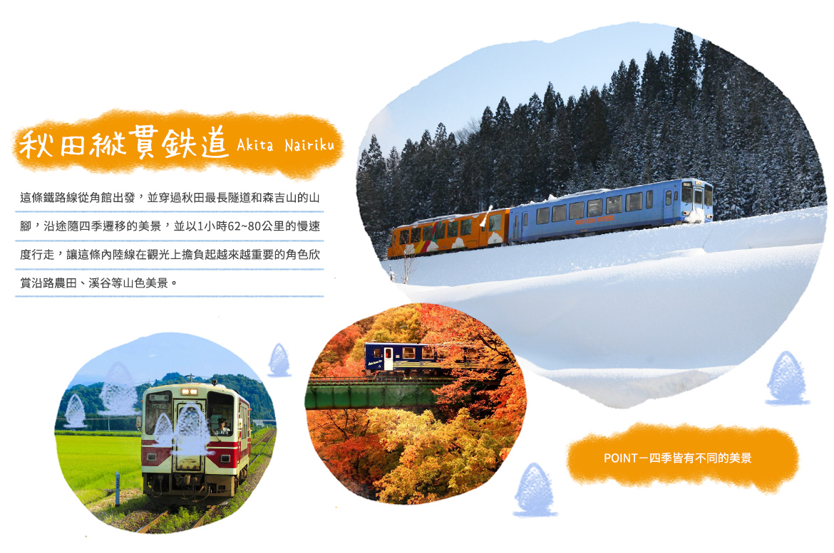 ★特別安排體驗搭乘一段【秋田內陸鐵道】,欣賞沿路的山林田園美景。