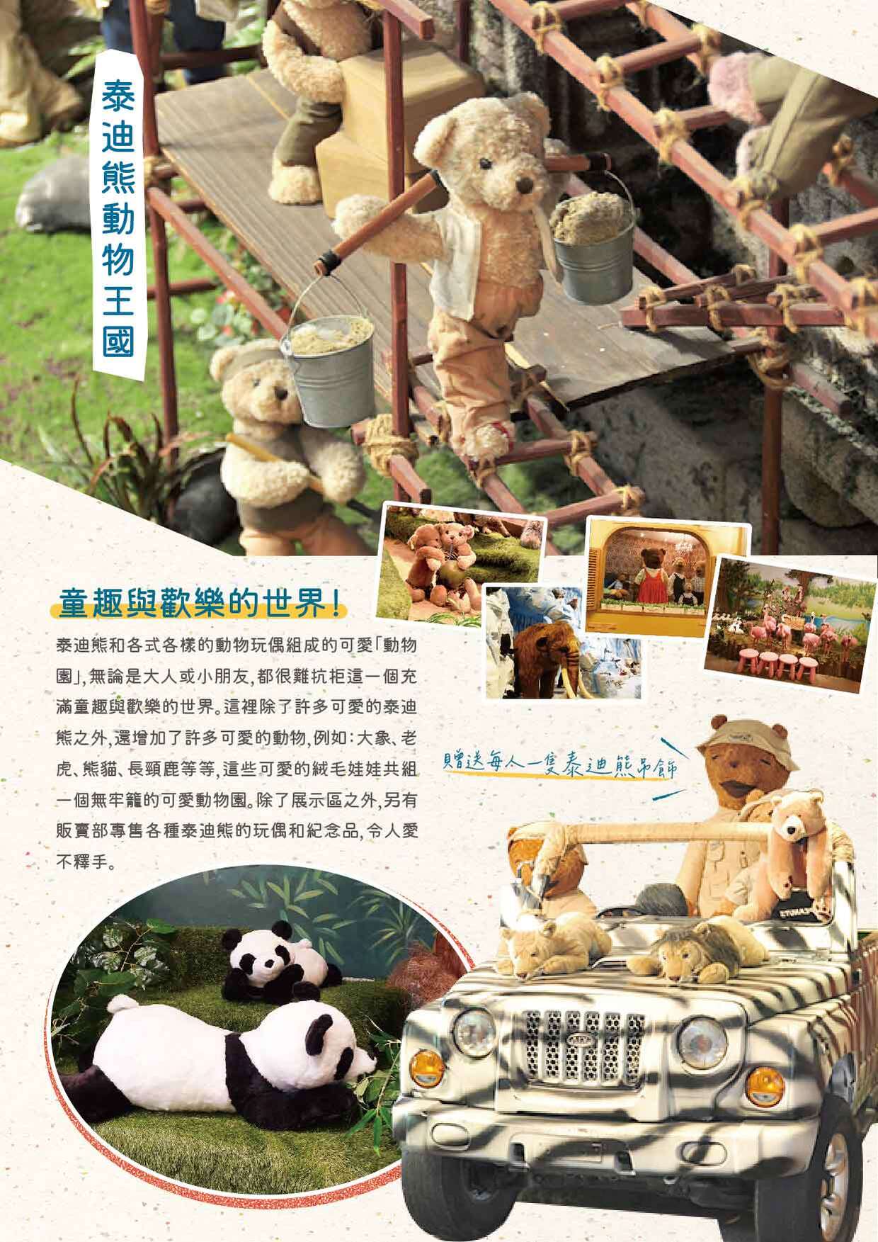 2009年全新開幕,是一個由泰迪熊和各式各樣的動物玩偶組成的可愛「動物園」,無論是大人或小朋友,都很難抗拒這一個充滿童趣與歡樂的世界。這裡除了許多可愛的泰迪熊之外,還增加了許多可愛的動物,例如:大象、老虎、熊貓、長頸鹿等等,這些可愛的絨毛娃娃共組一個無牢籠的可愛動物園,無論是凶猛的老虎、鱷魚,或是可愛的小綿羊、小白兔,遊客都可以近距離的觸摸和拍照。除了展示區之外,另有販賣部專售各種泰迪熊的玩偶和紀念品,令人愛不釋手。