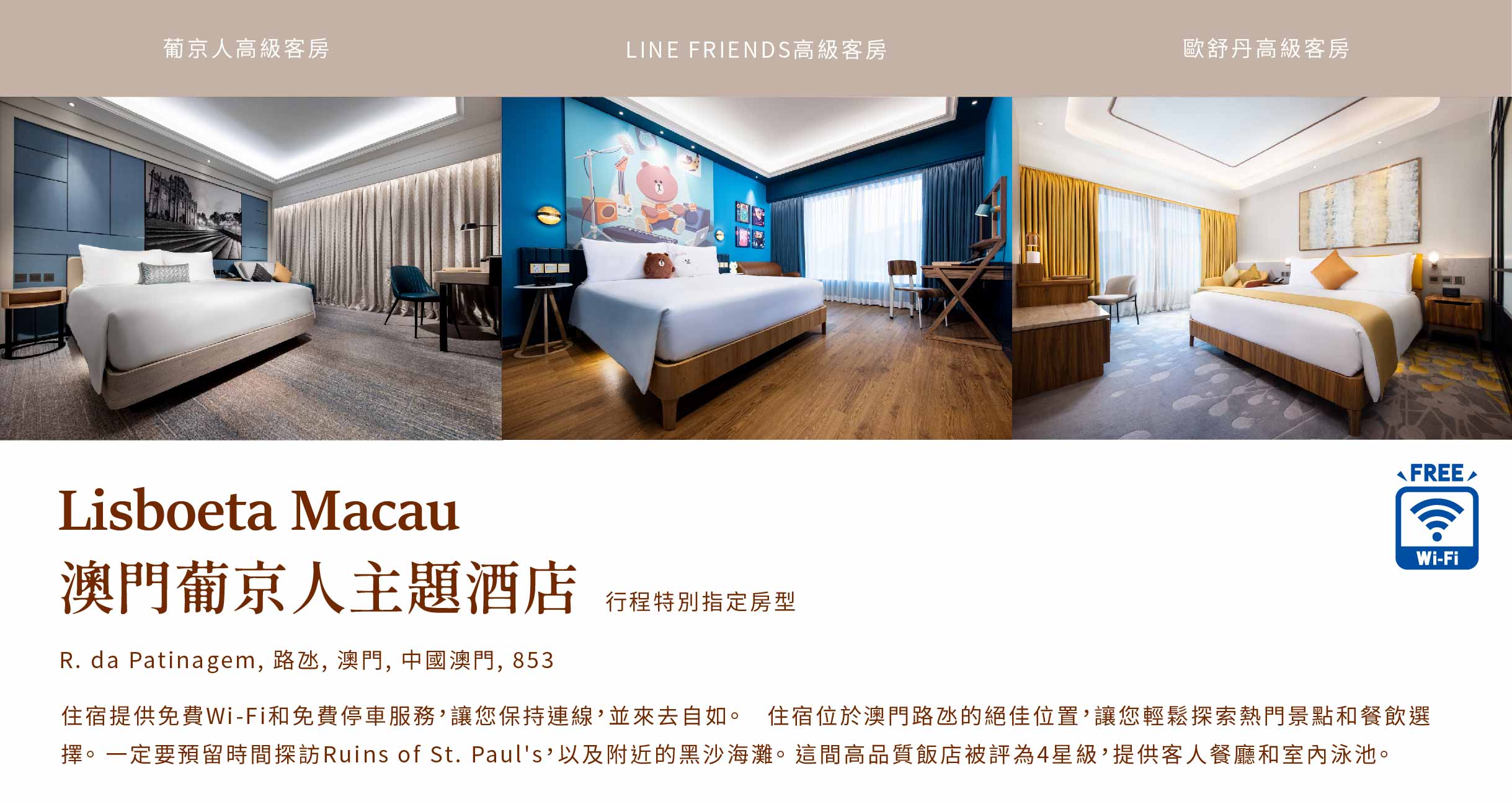 備註:上述澳門好禮票券內容將由服務人員於行程出發前提供說明會資料時一併提供,敬請留意
